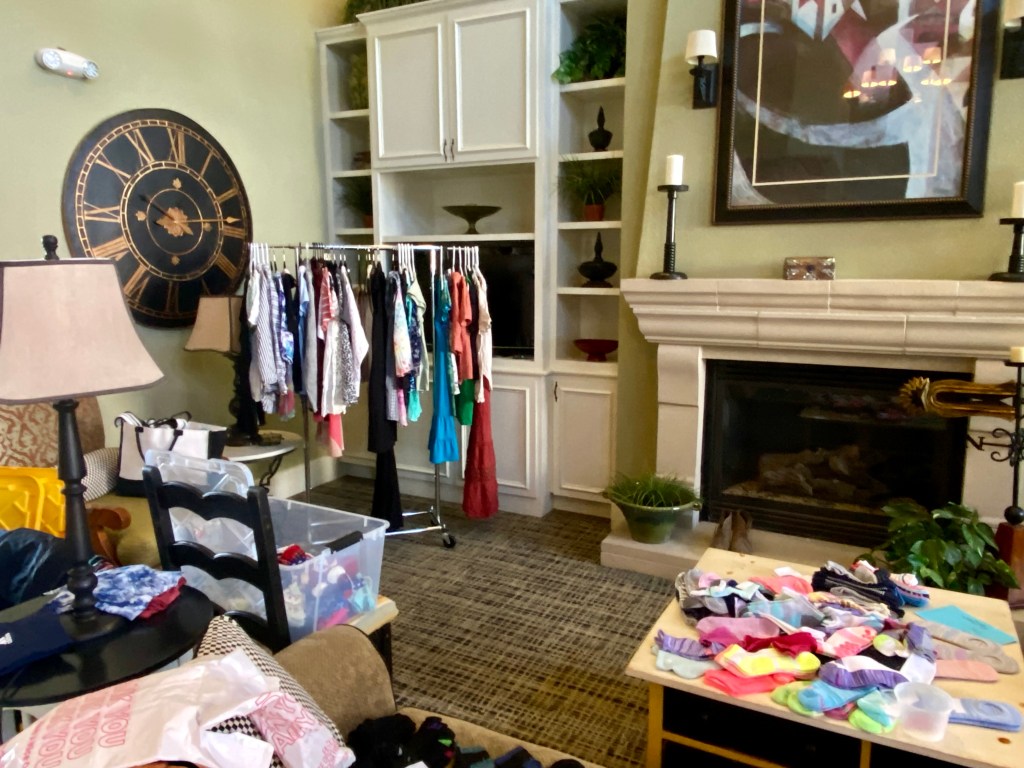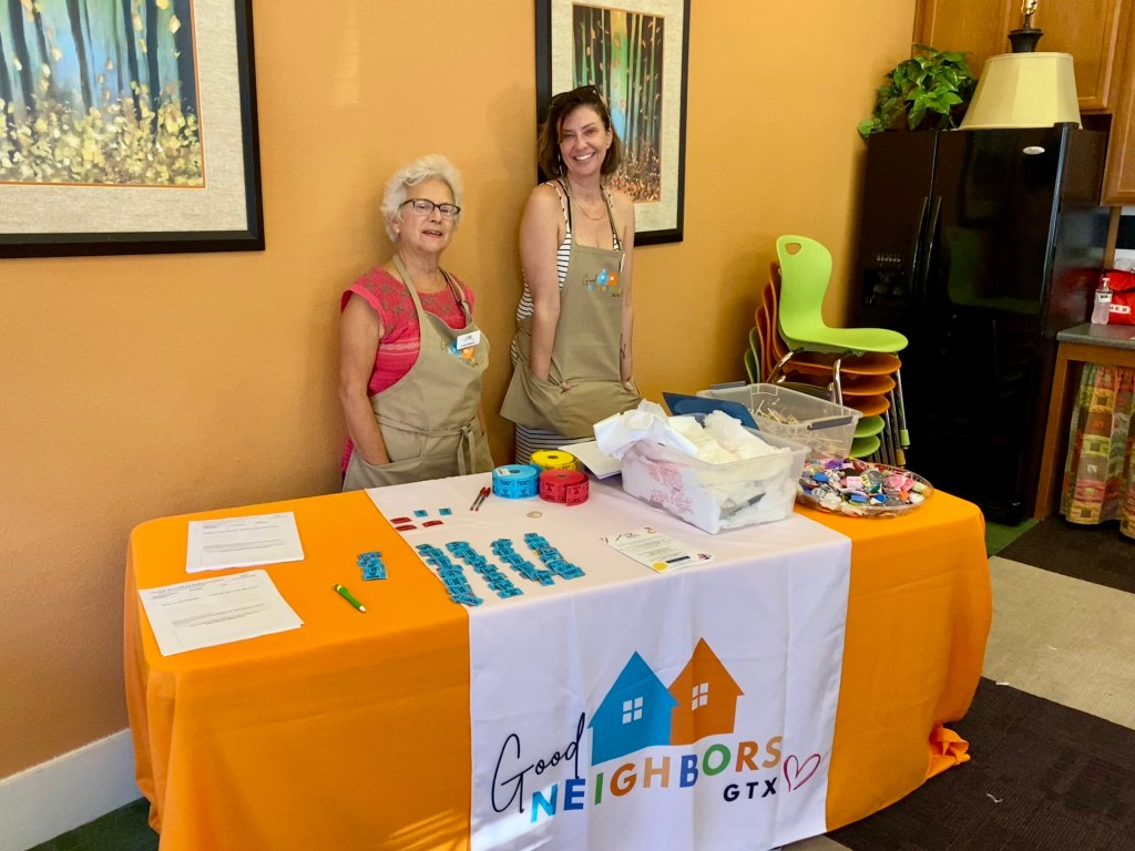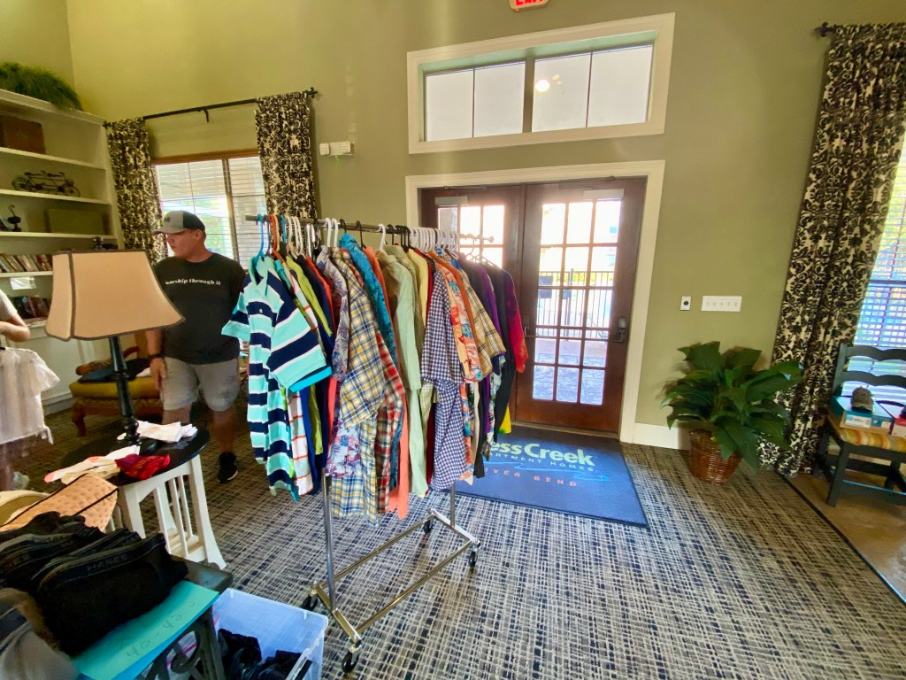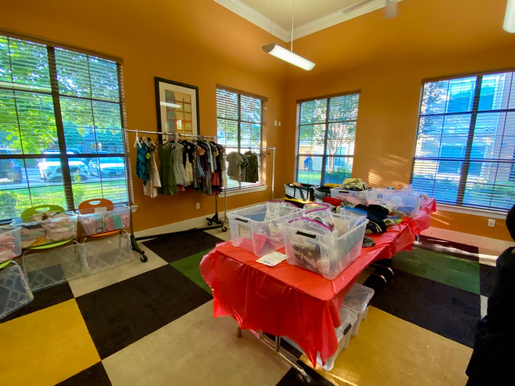 Good Neighbors GTX had the honor to have a clothes/shoes/undies/socks give-a-way at Cypress Creek Apartments (an Apartment Life complex) on Monday, August 5th. We had several volunteers step in to help. We had clothes hanging by size in various locations with bins of new undies and socks available for the children to pick from.