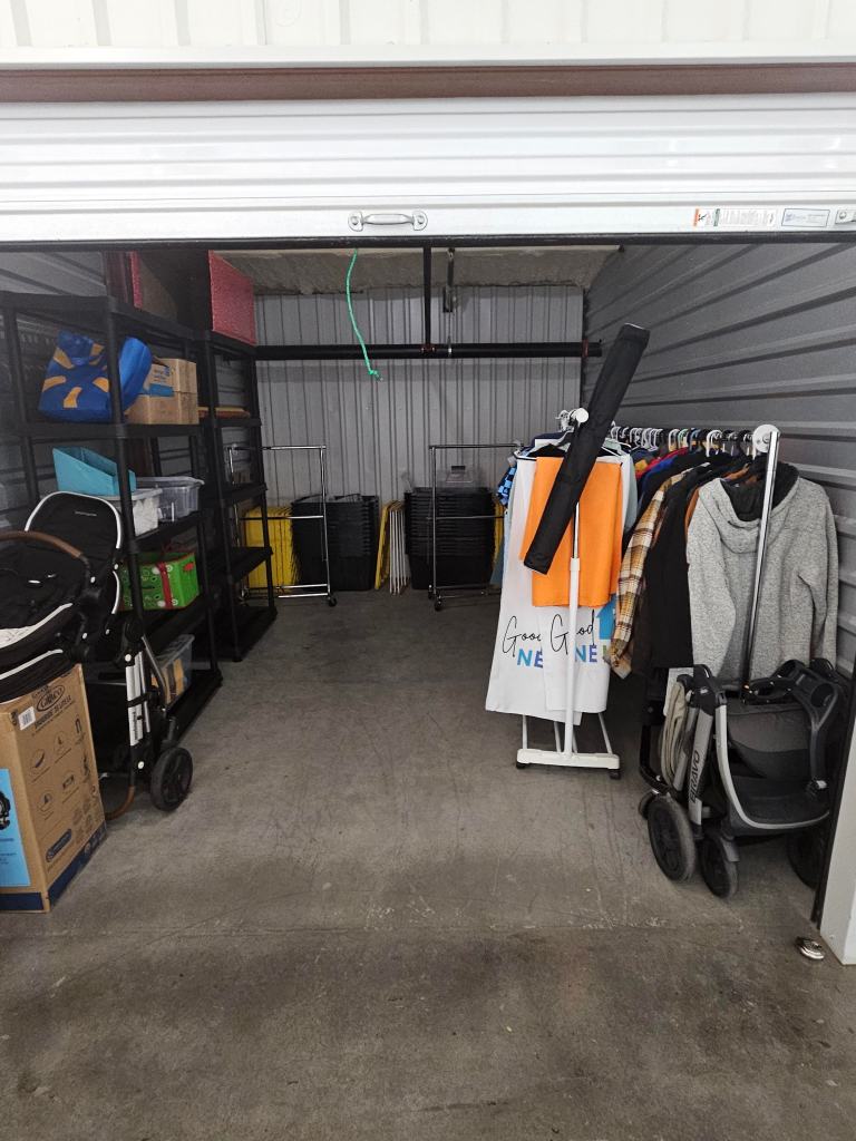 This week Good Neighbors GTX expanded our “Storehouse”. For the last year and a half we have maintained all of our clothes, supplies, racks and tubs in a 10 x 15 storage unit. This week we expanded to another 10 x 15 unit. Fortunately, we were able to get the 2nd unit on the same floor and down 3 units.